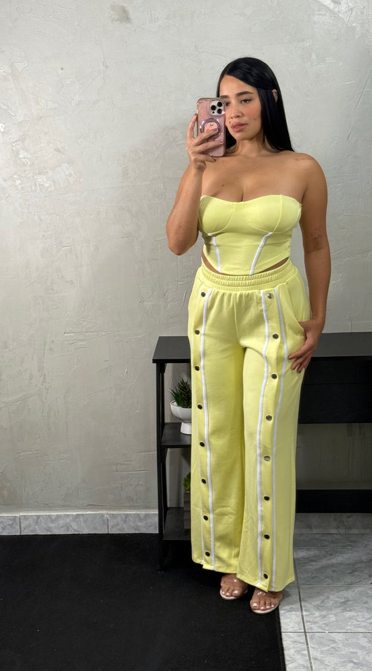 Yellow top with open shirt vibe