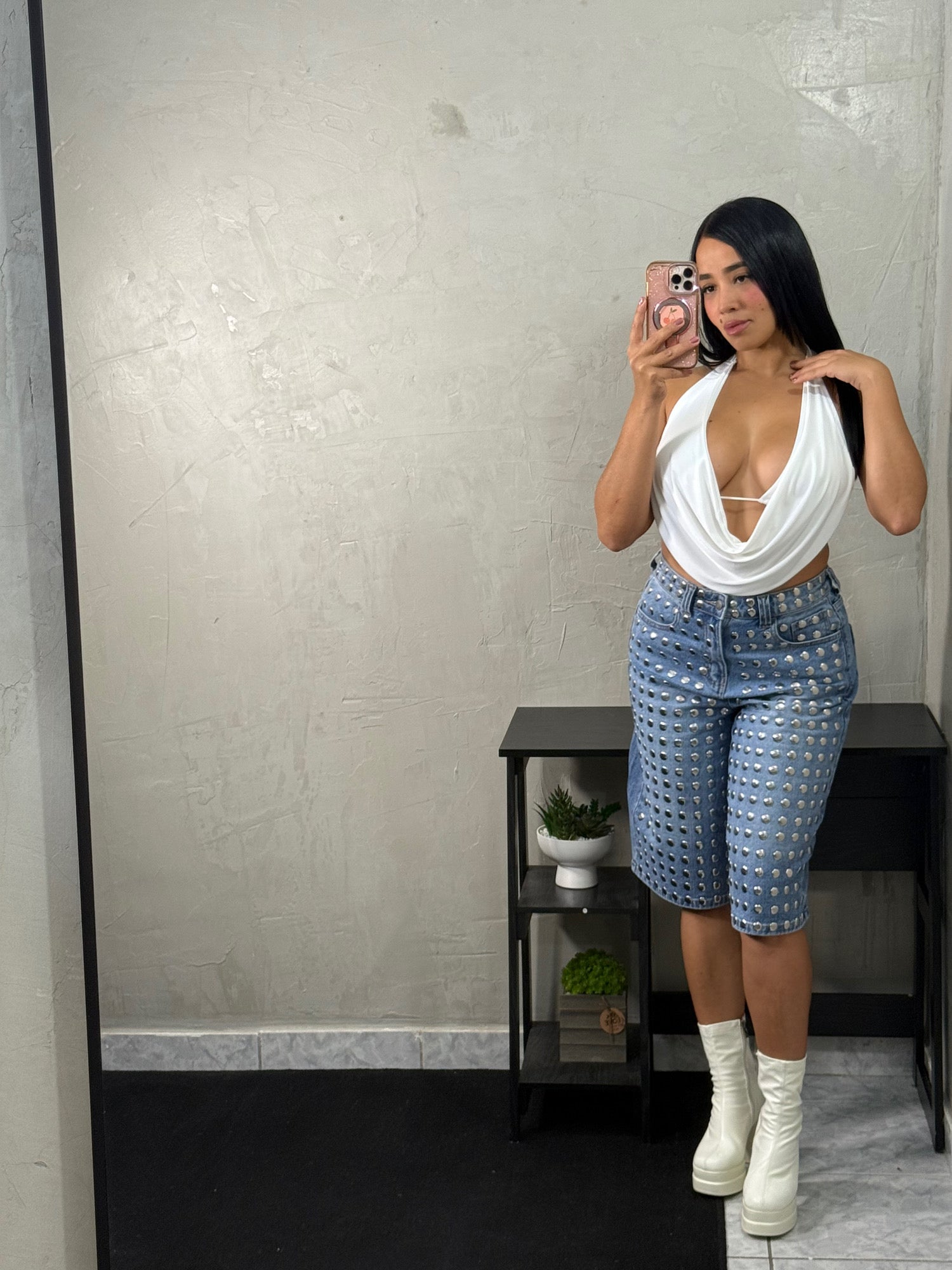 Whit top with open shirt vibe